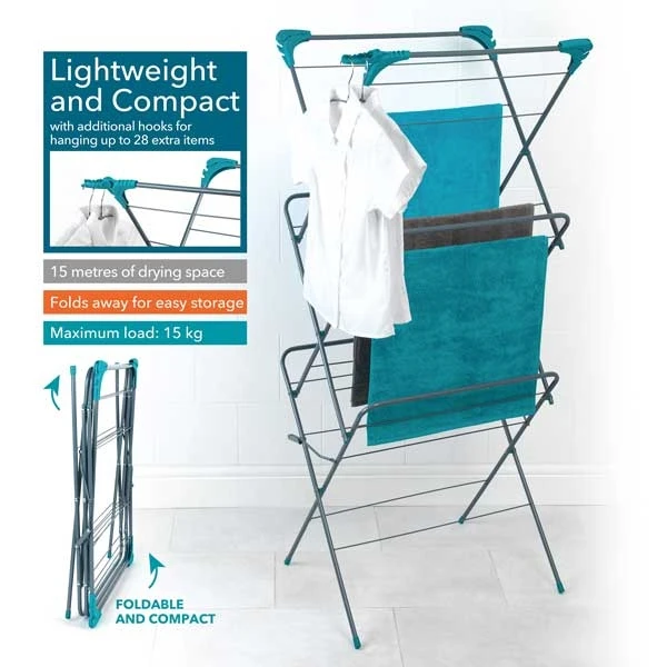 This three tier clothes airer is a neat way to dry and organise laundry, particularly when it comes to guest towels, tea towels and cleaning cloths.