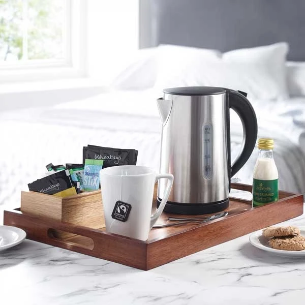 This smart wooden tray with cut out handles is made from Acacia wood and brings a boutique hotel touch to your bedrooms.