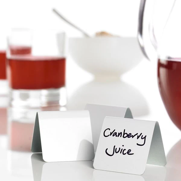 These neat white aluminium signs are perfect for easily identifying items on a breakfast buffet table. Simply write on the signs with a wipe-clean pen.
