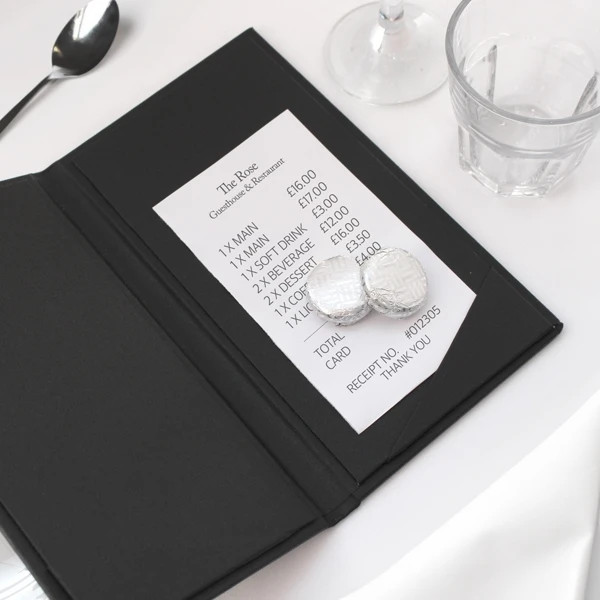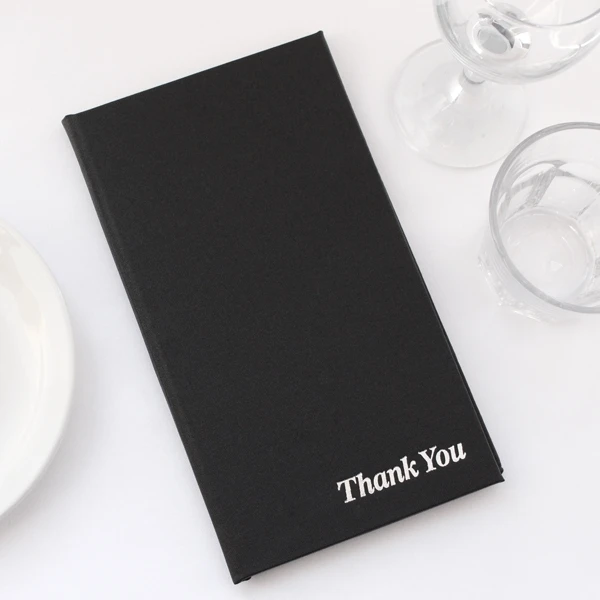 This smart presenter is an effortless way to present bills to your guests in a sleek style. The unique design on the front cover features the words: ‘Thank You’ in an eye-catching silver foil text.