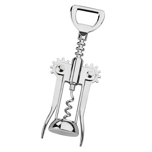 This handheld chrome plated wing corkscrew and bottle opener is easy to use and makes short work of opening a bottle of wine or beer.
