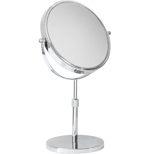 This free standing has a double sided standard mirror and 5 x magnification and 360° rotation with an adjustable height.