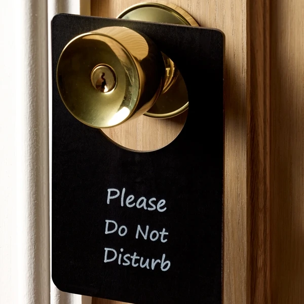 - Door-handle double sided sign reading “Please Do Not Disturb” and “Please Make Up The Room”