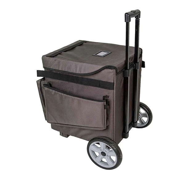 - Features a robust telescopic handle making it easy to push or pull the cart