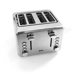 This attractive brushed stainless steel toaster can toast and reheat up to four slices of bread at a time, ensuring quick food preparation in the morning.