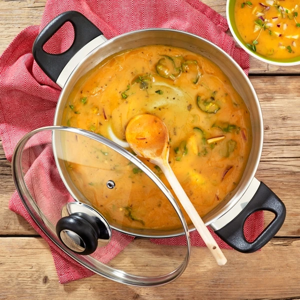 Oven safe to 180°C and equipped with thick hot forged bases which give even heat distribution on all hob types, including induction, these generously-sized 18/0 (18% chromium / zero nickel) stainless steel casserole pots are ideal for cooking up curries, stews, chillies and casseroles.