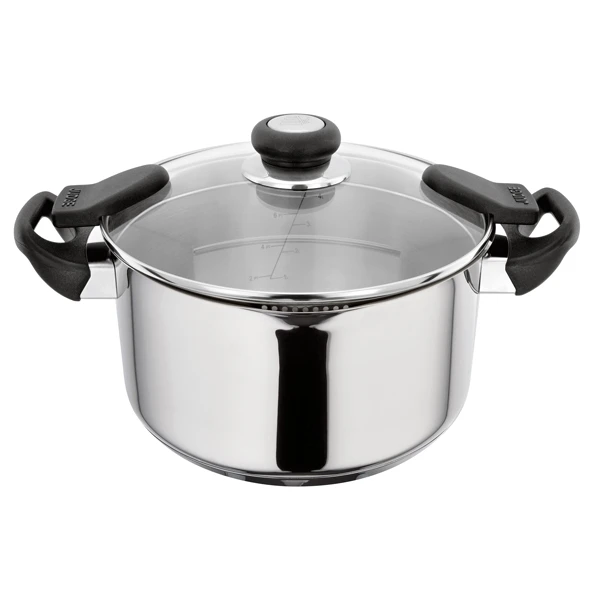Suitable for any stove, the pot has a vented and shatterproof glass lid to prevent overboiling and a double-sided draining cover which you can adjust to reduce the amount of steam released during draining. A mulitpurpose product that makes a great addition to your range of pots and pans with an elegant mirror-polished finish. Pint and litre unit levels are featured inside the pot for easy measuring.