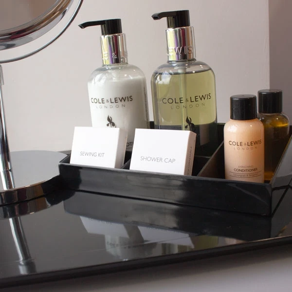 The sleek design of the tray features sloped sides which adds a smart quality to guest bathrooms, bedrooms or kitchens. It is ideal to showcase a range of complimentary guest products, from teas and refreshments to soaps and lotions.