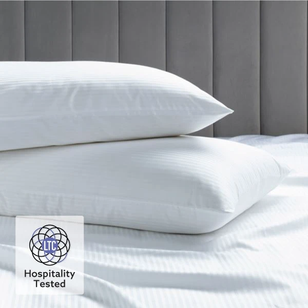 These 300 thread count pillowcases in stylish 0.5 cm satin micro stripe are a firm favourite amongst hoteliers and laundries as they retain their quality even after hundreds of washes in an industrial laundry. Their upmarket satin striped finish, indulgently high thread count and 100% cotton fabric ensure that they look and feel great for guests.