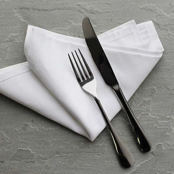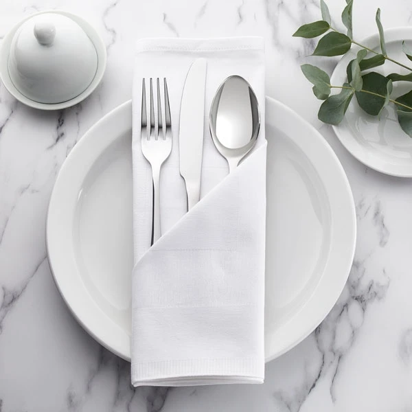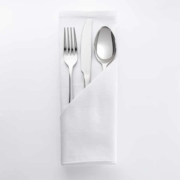 Luxury smart crisp white cotton napkins have an elegant woven satin band around the edge for a simple and stunning look of quality.