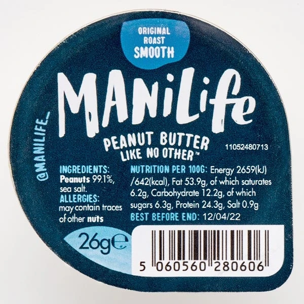 - Smooth peanut butter portions from popular brand ManiLife