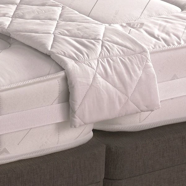 - Quilted polycotton pad with a polyester fill covers the gap between beds to keep guests comfortable