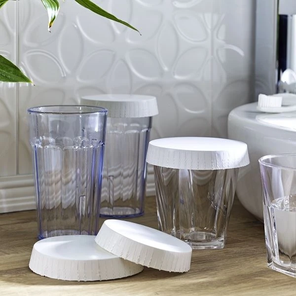 A great alternative to plastic glass covers, these recyclable multifunctional white card glass covers ensure drinks remain both fresh and hygienic while doubling up as a preventative measure against spillages on welcome trays and breakfast tables and to protect your customers’ drinks.