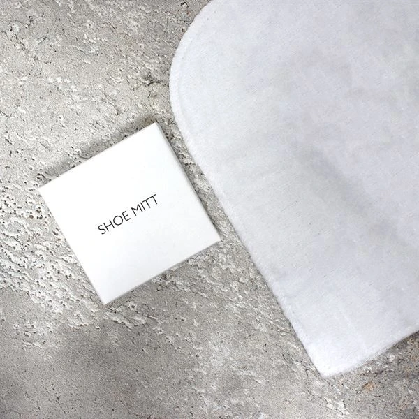 Provided in classic recyclable cardboard boxes with simple black lettering, these shoe polishing mitts are perfect for guests on the go.