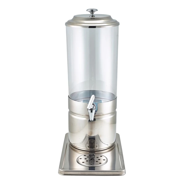 The ultimate in drinks presentation; this quality stainless steel juice dispenser is ideal for a self-service beverage display. The push down tap is easy to use and there is a drip tray for smart and efficient drinks access. Use the dispenser to provide your guests with fresh juice or flavoured water at breakfast, brunch or refreshment service.