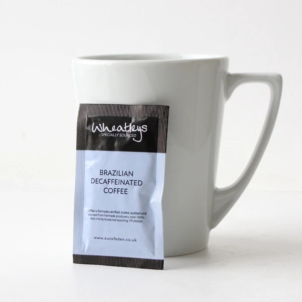 - Sachets of gently decaffeinated instant coffee grown in Brazil
